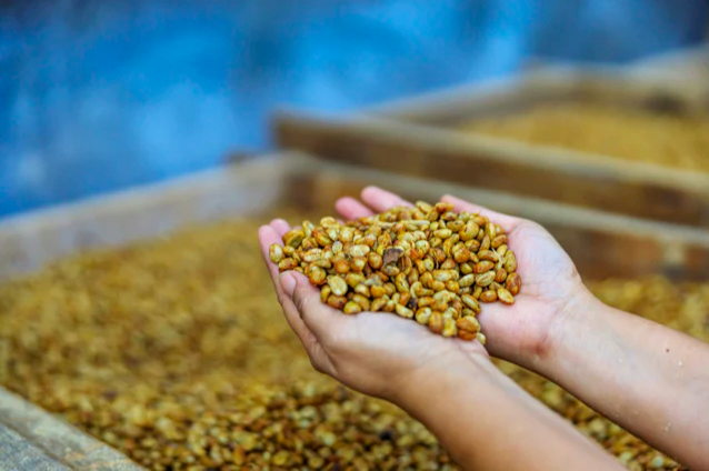 豆子在第一天完全不动,然后每天耙一次;干燥时间可能需要长达三周的时间。